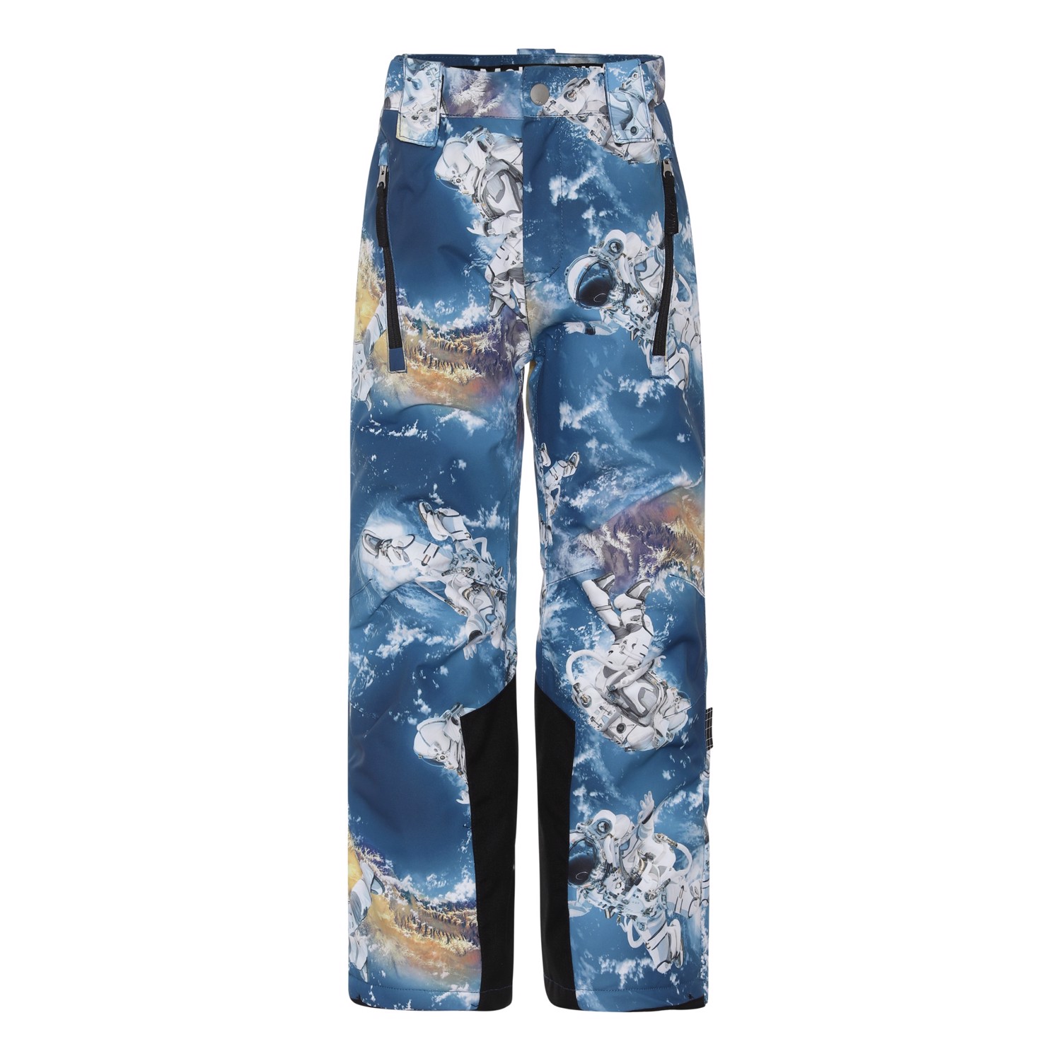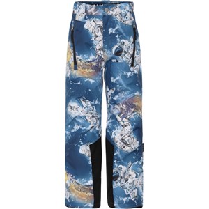 Jump pro är ett par blå överdragsbyxor med astronaut som är särskilt bra som skidbyxor, då de är mycket slitstarka. Jump Pro är perfekta till både extrem kyla och vanliga vintrar på grund av deras otroligt höga andningsförmåga och isolering. Den höga andningsförmågan hjälper till att reglera kroppstemperaturen och ser till att ditt barn varken blir för varmt eller kallt. På varmare vinterdagar kan barnet därför ha tunnare lager under och på de riktigt kalla dagarna kan man kompletterna med ett extra lager under. Har du ett stillasittande barn är Jump Pro också ett perfekt val. Yttermaterialet är tillverkat av 45% återvunnen polyester, the 3M™ Thinsulate™ fodret av 83% återvunnen polyester och materiale av 100% återvunnen polyester. Byxorna har knapp och dragkedja i midjan, fickor i sidorna, justerbar benöppning med snölås och extra förstärkning mellan benen. Byxorna är vind- och vattentäta och andas. Denna vara har en vattenavvisande PFC-fri impregnering (innehåller t.ex. inte PFOS, PFOA eller liknande). Vattenpelare: 15.000 mm. Andningsförmåga: 15.000 g/m2/24t. Skidbyxorna har velcroöglor till hängslen som kan köpas separat.