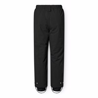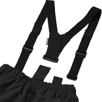 Svart vind- och vattentäta byxor tillverkade av återvunnen nylon. Byxorna har resår i midjan samt en justerbar resår invändigt, hällor för Molos hängslen (extra tillbehör) och justerbara benslut med snölås. Byxorna har en stor reflex på baksidan som ökar synligheten i trafiken.