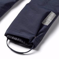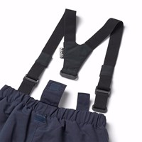 Vind- och vattentäta vinterbyxor i mörkblå tillverkade av nylon. Byxorna har en elastisk midja och ett justerbart invändigt gummiband, bälteshällor för Molos hängslen (köps separat) och benslut med snölås. Det finns också en stor reflex på baksidan för att öka synligheten i trafiken.