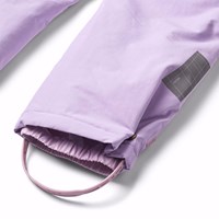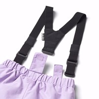 Vind- och vattentäta vinterbyxor i lila tillverkade av nylon. Byxorna har en elastisk midja och ett justerbart invändigt gummiband, bälteshällor för Molos hängslen (köps separat) och benslut med snölås. Det finns också en stor reflex på baksidan för att öka synligheten i trafiken.