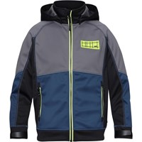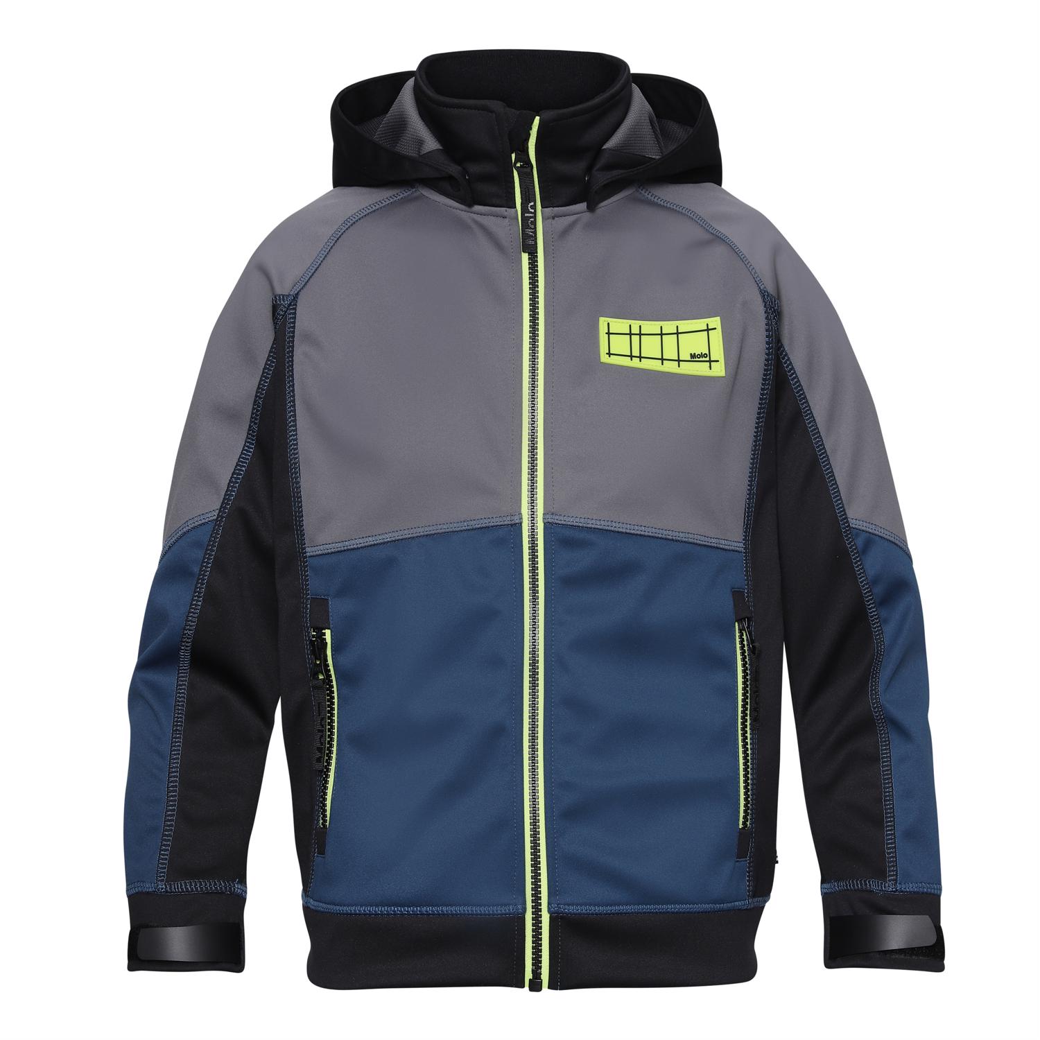 Cloudy är en blå, grå och svart sportig och vattentät softshelljacka med neongröna detaljer. Cloudy har en avtagbar luva, dragkedja framtill, fickor vid sidorna, vindstopp i ärmarna och en elastisk kand nedtill. Denna produkt har en vattenavvisande PFC-fri impregnering (Innehåller t.ex. inte PFOS, PFOA eller liknande). Vattenpelare: 8.000 mm. Andningsförmåga: 3.000 g/m2/24h.