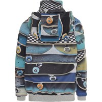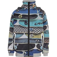 Cloudy är en sportig och vattentät softshell jacka med tryck av skateboards. Cloudy har avtagbar huva, dragkedja framtill, fickor i sidan samt vindslå i ärmarna och resårkant i nederkant. Molo's softshell jacka är perfekt till övergångsperioderna, eftersom materialet är vattentätt och har bra andningsförmåga. Produkten har en vattenavvisande PFC-fri impregnering (innehåller ej PFOS, PFOA eller liknande). Vattenpelare: 8.000 mm. Andningsförmåga: 3.000 g/m2/24t