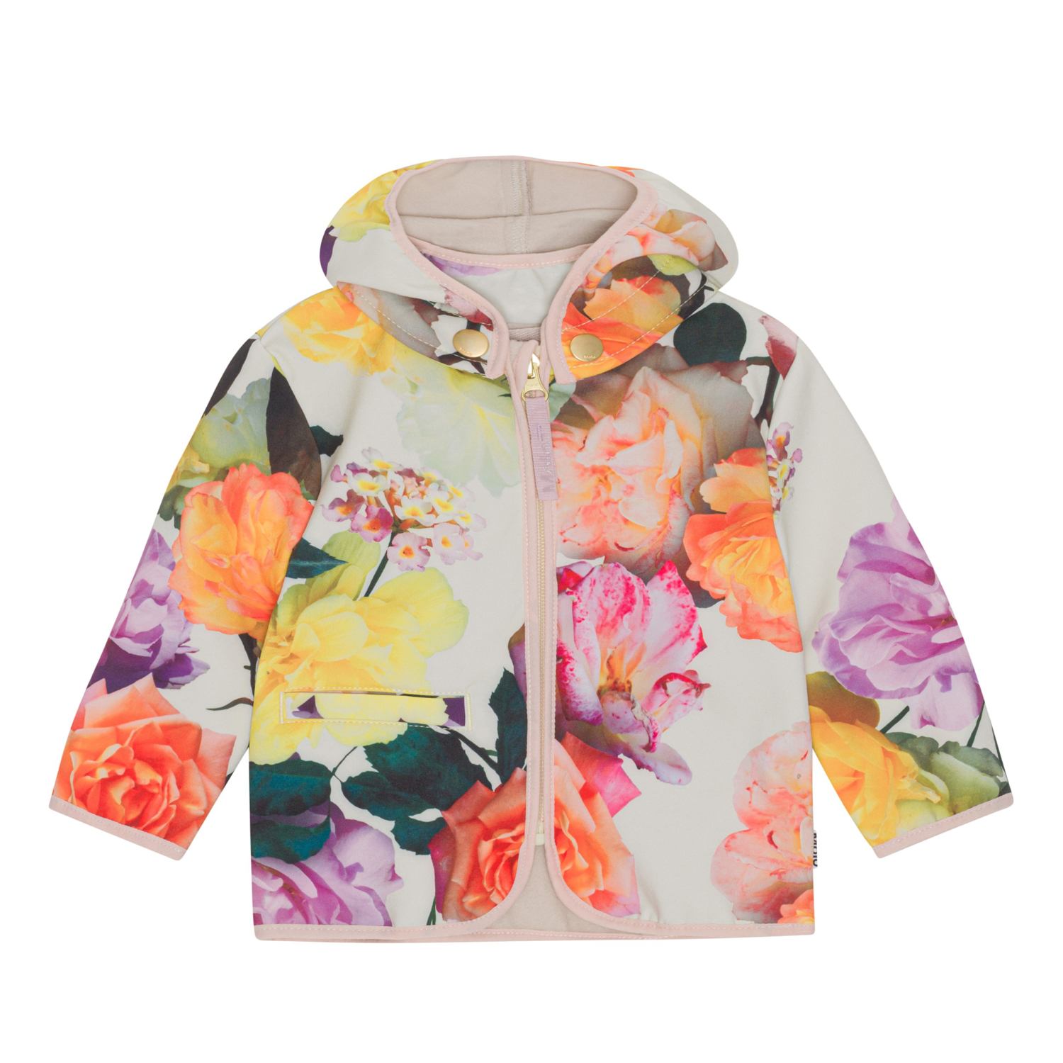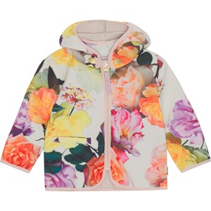 Hide er en funktionel og blød softshell jakke til babyer og det mindre barn. Jakken er her i grå med stort blomster print. Hide har aftagelig hætte, lynlås ned langs fronten, frontlommer, refleks bagpå samt rib ved ærmer og hætte. Molo's softshell jakker er et oplagt valg til vuggestue/børnehave, da ydermaterialet er vindtæt, vandtæt og åndbart. Produktet har en vandafvisende PFC-fri imprægnering (indeholder f.eks. ikke PFOS, PFOA og lignende). Vandsøjletryk: 8.000 mm. Åndbarhed: 5.000 g/m2/24t. Sømmene er ikke tapede.
