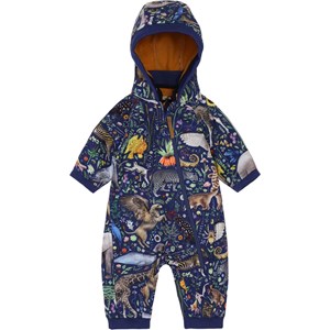 Hill är en funktionell och mjuk softshelldräkt till baby och små barn. Heldräkten är designad med ett fantasifullt djurmönster och kontrastfärg på insidan. Hill har avtagbar luva, mjuka ribbavslut, reflex baktill och en lång dragkedja framtill så att det är lätt att ta på dräkten. Molo´s softshelldräkt är det perfekta valet till förskola då dräkten är vindtät, vattentät och andas medan den invändiga fleecen är tillverkad av återvunnen polyester från plastflaskor. Denna produkt har en vattenavvisande PFC-fri impregnering (innehåller t.ex. inte PFOS, PFOA och liknande). Vattenpelare: 8.000mm. Andningsförmåga: 5.000 g/m2/24t. Sömmarna är inte tejpade.