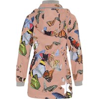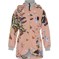 Hillary är en parka inspirerad softshell jacka i ljusrosa med tryck av fjärilar. Jackan har resår i midjan, avtagbar huva, dragkedja framtill, resårkant vid ärmslut samt Molo's ikoniska stjärnreflex bak. Molo's softshell jacka är perfekt till övergångsperioderna, eftersom materialet är vattentätt och har bra andningsförmåga. Produkten har en vattenavvisande PFC-fri impregnering (innehåller ej PFOS, PFOA eller liknande). Vattenpelare: 8.000 mm. Andningsförmåga: 3.000 g/m2/24t.