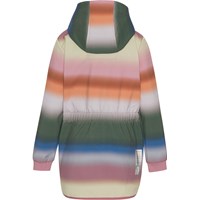 Hillary är en softshelljacka med pastellfärgat regnbågsmönster. Jackan har gummiband i midjan, avtagbar luva, dragkedja, elastisk kant vid ärmslut och Molo´s välkända stjärnreflex baktill. Molo´s softshelljackor är ett perfekt val till övergångsperioderna då yttermaterialet är vind- och vattentätt och andas. Denna vara har en vattenavvisande PFC-fri impregnering (innehåller t.ex. inte PFOS, PFOA eller liknande). Vattenpelare: 8.000 mm. Andningsförmåga: 5.000 g/m2/24t.