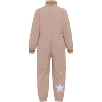 Hollyn er en praktisk og let isolerende termo heldragt i nougat med indvendig kontrastfarve i gylden gul. Heldragten er oplagt til det mindre barn og har ribkanter ved hals- og ærmeafslutning, lommer i siden samt regulerbar elastik i ryggen. Heldragten har Molo's ikoniske refleksstjerne bag på det ene ben, det gælder dog ikke str. 134/140. Derudover har str. 74/80 - 98/104 forstærkning på knæene og enden i samme farve som heldragten, hvilket ikke ses på billedet.