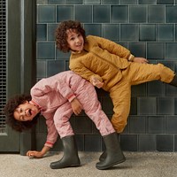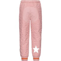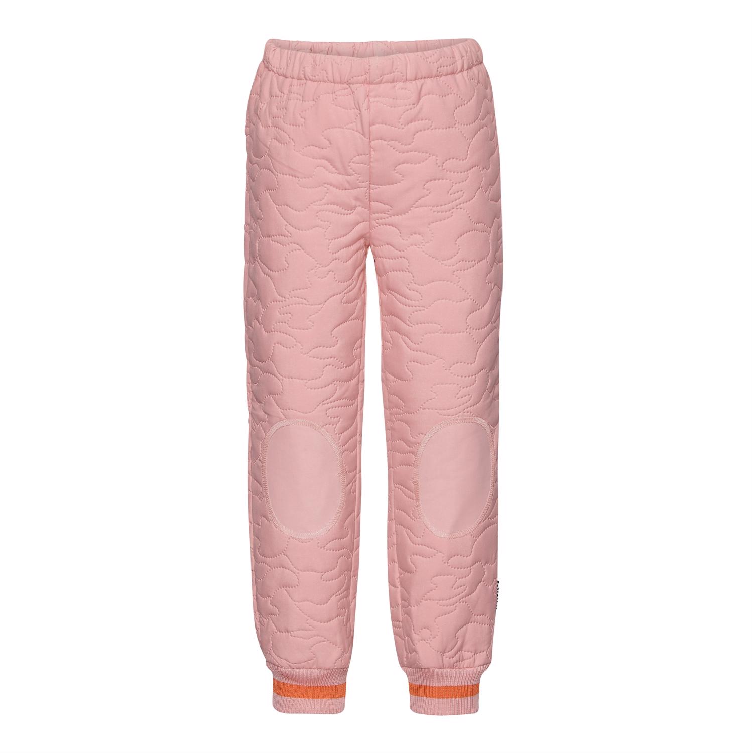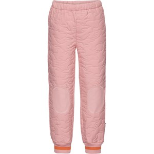 Hoti är ett par rosa termobyxor med ett fint sytt mönster. Byxorna har rosa-randiga muddar vid benslutet.