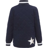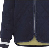 Husky er en let isolerende termojakke i mørkeblå. Jakken er designet med en indvendig kontrastfarve i cedergrøn, ligesom den har ribkanter ved hals- og ærmeafslutning og Molo's ikoniske refleksstjerne på ryggen, som sikrer synlighed i den mørke tid.