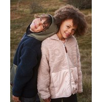 Rosa fleecejakke med smiley motiv, lynlås fortil, hætte og store lommer. Fleecejakken virker isolerende og kan derfor bruges alene eller som et ekstra lag under overtøjet på de koldeste dage.