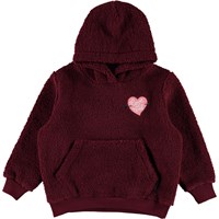 Ugga är en bordeaux fleece-hoodie. Hoodie är mjuk att bära och känns som att kramas av en nallebjörn. Ugga har känguruficka framtill och lapp på vänster bröst. Använd både Ugga inuti och som extra värme under en jacka.
