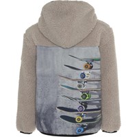 Ugo är en beige fleecejacka med skateboard tryck på ena sidan och huva. Jackan har svart dragkedja, samt ficka med dragkedja framtill. Fleecejackan kan användas separat eller som ett extra värmande lager under en annan jacka.