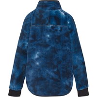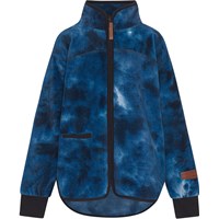 Mörkblå fleecejacka med tie-dye-effekt, dragkedja framtill, enkel sidficka och ribbstickning vid ärmslutningarna. Fleecejackan ger isolering och kan därför användas ensam eller som ett extra lager under ytterplagget på de kallaste dagarna.