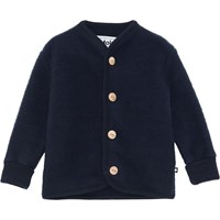 Umber är en mörkblå babyjacka i 100% Merino ull med knappar framtill och uppvik på ärmarna.