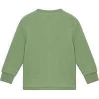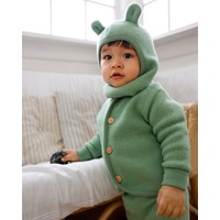 Grön kofta för de minsta i mjuk fleecekvalitet av 100% merinoull. Koftan är särskilt lämplig som ytterplagg när man går en promenad med barnvagnen under kalla höst- och vintermånader och kan med fördel också användas som ett extra lager inomhus. Den har en rymlig passform med knappar framtill och tätt åtsittande ribbkanter med uppvik vid ärmöppningarna.Ull är idealiskt för de allra minsta eftersom det är 100% naturligt, reglerar temperaturen, är luftigt och mjukt mot känslig hud.
