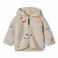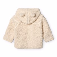Råvit fleecejacka för de små i återvunnen polyester med mjukt bomullsfoder. Jackan har en praktisk dragkedja, huva med fastsydda små teddybjörnsöron och matchande kantband. Den är mjuk, har en normal passform och fungerar bra både på egen hand eller som ett extra lager under en jacka.