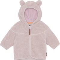 Rosa fleecejakke til de mindste med praktisk lynlåslukning og hætte med påsyede små ører. Fleecejakken virker isolerende og kan derfor bruges alene eller som et ekstra lag under overtøjet på de koldeste dage.