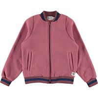 Unique är en mörkrosa fleecejacka med randiga glitter ribbkanter vid hals, nederkant och ärmslut. Fleecejackan har dragkedja och har fickor fram. Molo's fleecejacka värmer och isolerar skönt. Använd jackan separat eller som ett extra värmande lager under en annan jacka.