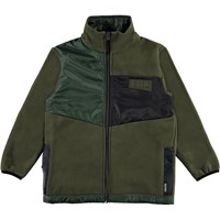 Urbain är Molos nya coola fleecejacka i grön med svarta detaljer, dragkedja och fickor. Jackan har ränder med en blank yta både fram- och baktill. Kombinera jackan med matchande byxor.