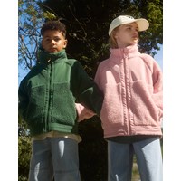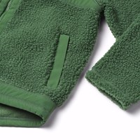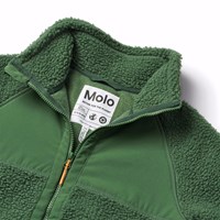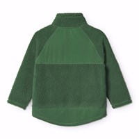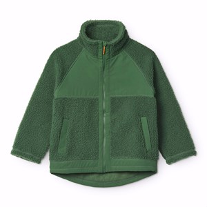 Grön fleecefodrad jacka i återvunnen polyester med framfickor och slitstarka detaljer. Jackan har en lös passform, hög krage, dragkedja med hakskydd och är längre baktill.