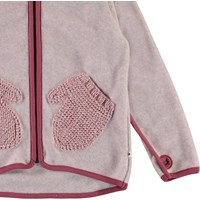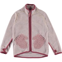 Ushi är en ljusrosa polar fleecejacka med dragkedja, hög krage, tumhål och fina stickade fickor fram. Fleecejackan kan användas separat eller som ett extra värmande lager under en annan jacka.