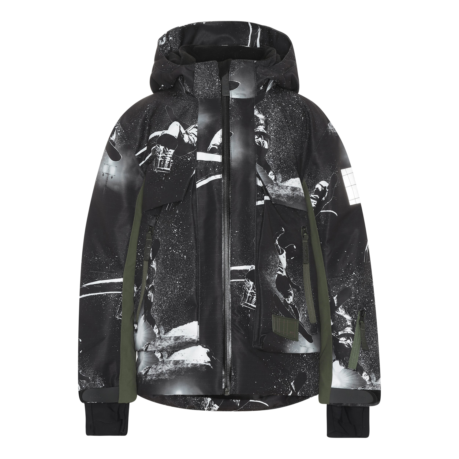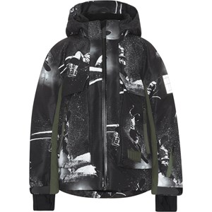 Alpine är en funktionell och vattentät vinterjacka i svart med snowboarders. Alpine är perfekt till både de extremt kalla och vanliga vintrarna på grund av dess otroligt höga andningsförmåga och isolering. Den höga andningsförmågan hjälper till att reglera kroppstemperaturen och ser till att ditt barn varken blir för varmt eller kallt. På varmare vinterdagar kan barnet därför ha tunnare lager under och på de riktigt kalla dagarna kan man kompletterna med ett extra lager under. Har du ett stillasittande barn är Alpine också ett bra val. Jackan har avtagbar luva, dragkedja, rymliga fickor, justerbara ärmöppmingar med snölås och reflex baktill. Jackan är vind- och vattentät och andas. Yttermaterialet är tillverkat av 45% återvunnen polyester, the 3M™ Thinsulate™ fodret av 83% återvunnen polyester och materiale av 100% återvunnen polyester. Denna vara har en vattenavvisande PFC-fri impregnering (innehåller t.ex. inte PFOS, PFOA eller liknande). Vattenpelare: 15.000 mm. Andningsförmåga: 15.000 g/m2/24t.