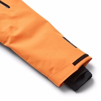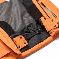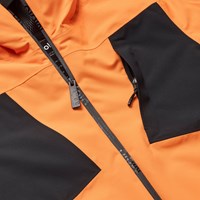 Vind- och vattentät orange vinterjacka tillverkad av återvunnen polyester. Jackan har en fodrad huva, vattentäta dragkedjor, en ficka på ärmen för ett skidpass och en innerficka för extra förvaring. Jackan har en vindflik, kardborreband runt handlederna och ärmslut med tumhål, vilket håller snö, vind och vatten ute. Dessutom är jackan fodrad med fleece, vadderad med 3M™ Thinsulate™ och har en reflextext för att öka synligheten i trafiken.
