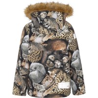 Castor är en fodrad och vattentät vinterjacka med sovande djur. Castor är perfekt till både de extremt kalla och vanliga vintrarna på grund av dess otroligt höga andningsförmåga och isolering. Den höga andningsförmågan hjälper till att reglera kroppstemperaturen och ser till att ditt barn varken blir för varmt eller kallt. På varmare vinterdagar kan barnet därför ha tunnare lager under och på de riktigt kalla dagarna kan man kompletterna med ett extra lager under. Har du ett stillasittande barn är Castor också ett bra val. Jackan har avtagbar luva med fuskpälskant (som också är avtagbar), dold dragkedja med överlapp, dolda fickor, synliga reflexer på sidan och baktill. Jackan är vind- och vattentät och andas. Yttermaterialet är tillverkat av 45% återvunnen polyester, the 3M™ Thinsulate™ fodret av 78% återvunnen polyester och materiale av 100% återvunnen polyester. Denna vara har en vattenavvisande PFC-fri impregnering (innehåller t.ex. inte PFOS, PFOA eller liknande). Vattenpelare: 15.000 mm. Andningsförmåga: 15.000 g/m2/24t.