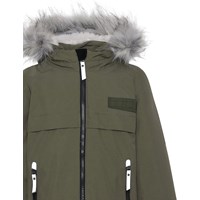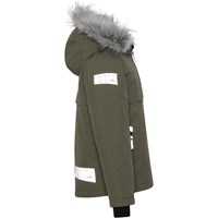 Castor är en fodrad och vattentät vinterjacka i grön. Jackan har avtagbar fuskpälskant på huvan, dold dragkedja och fickor, samt synliga reflexer på ärmen och baktill. Jackan är i ett vind- och vattentätt material som andas och innertyg och foder är återvunnet, tillverkat av återvunnen polyester. Denna produkt har en PFC- fri impregnering (innehåller t.ex. inte PFOS, PFOA och liknande). Vattenpelare och andningsförmågan är ytterligt förbättrad och är nu helt uppe i 15.000mm i vattenpelare och andningsförmågan på 15.000 g/m2/24t.