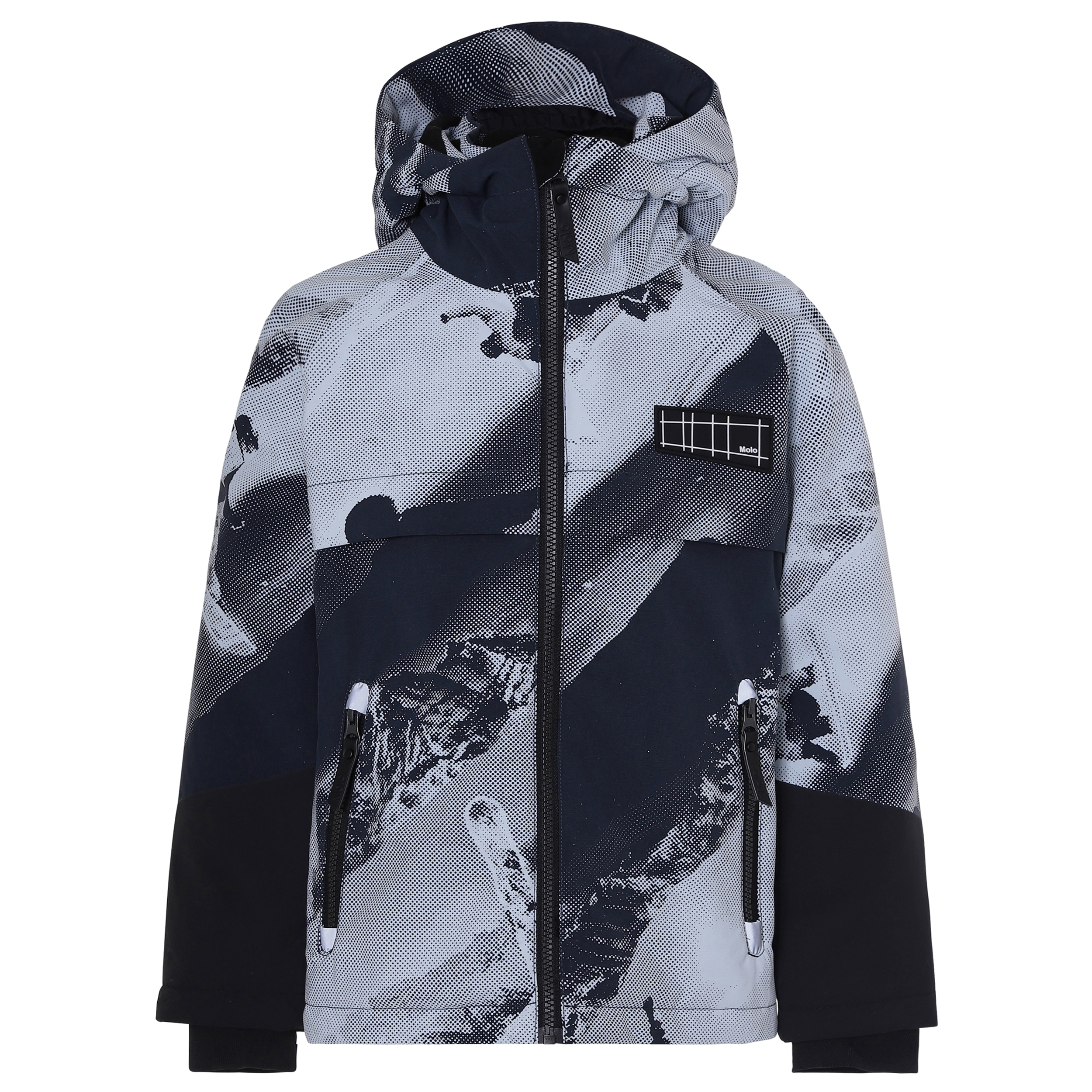 Castor är en fodrad och vattentät vinterjacka med tryck av snowboards i grå färger. Jackan har en avtagbar huva, dold dragkedja, dolda fickor, Molos välkända stjärnreflex på baksidan och elastiska manschetter och bottnar. Jackan är gjord av ett vindtätt, vattentätt och andningsbart material, har 3M™ Thinsulate™-isolering, fleece av hög kvalitet på utsatta områden och tejpade sömmar. Denna produkt har en vattentät PFC-fri impregnering (innehåller till exempel inte PFOS, PFOA och liknande). Vattenpelare och andningsförmåga har förbättrats ytterligare och är nu upp till 15 000 mm i vattenpelare och andningsförmåga på 15 000 g/m2/24h.