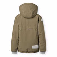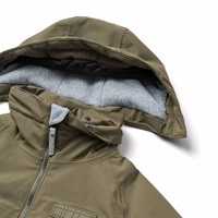 Vind- och vattentät mörkgrön vinterjacka i återvunnen nylon. Jackan har en avtagbar fodrad huva, praktisk dragkedja, dragkedjefickor med fleece, ribbade ärmslut och resår i botten för att effektivt skydda mot vinden. På baksidan finns en stor reflex som ökar synligheten i trafiken. Dessutom är jackan fodrad med fleece och vadderad med 3M™ Thinsulate™.