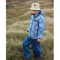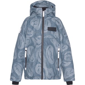 Castor er en vinterjakke i en klasse for sig. Vinterjakkens mange kvaliteter, som ekstremt højt vandsøjletryk og en lige så høj grad af åndbarhed, kombineret med at Castor altid kommer i flotte print og farver, gør at denne jakke er en sikker vinder hvert år. Dette er vinterjakken som ikke går på kompromis og selvfølgelig er den også fremstillet ved brug af ansvarlige og genanvendte materialer. Castor er her i blåt denim look med print af forskellige former for sjove ansigter.