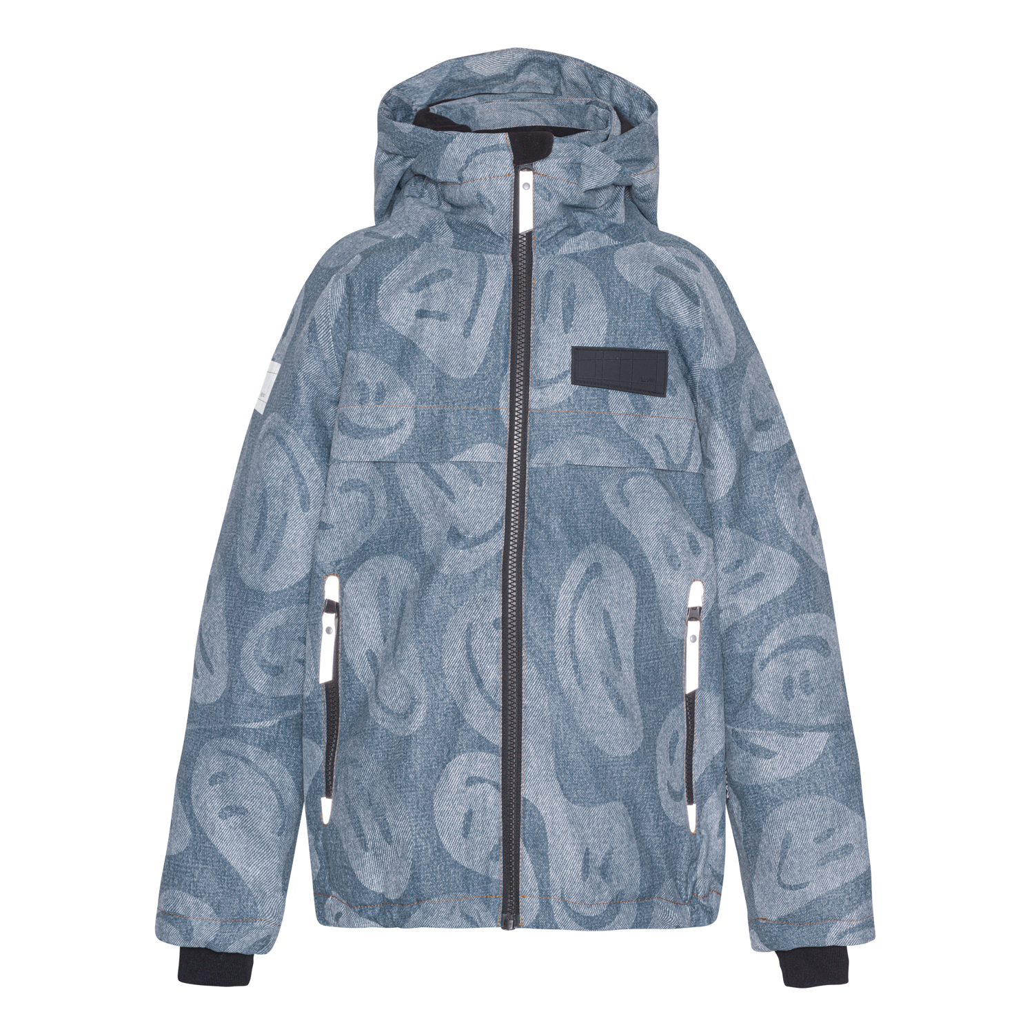 Castor er en vinterjakke i en klasse for sig. Vinterjakkens mange kvaliteter, som ekstremt højt vandsøjletryk og en lige så høj grad af åndbarhed, kombineret med at Castor altid kommer i flotte print og farver, gør at denne jakke er en sikker vinder hvert år. Dette er vinterjakken som ikke går på kompromis og selvfølgelig er den også fremstillet ved brug af ansvarlige og genanvendte materialer. Castor er her i blåt denim look med print af forskellige former for sjove ansigter.