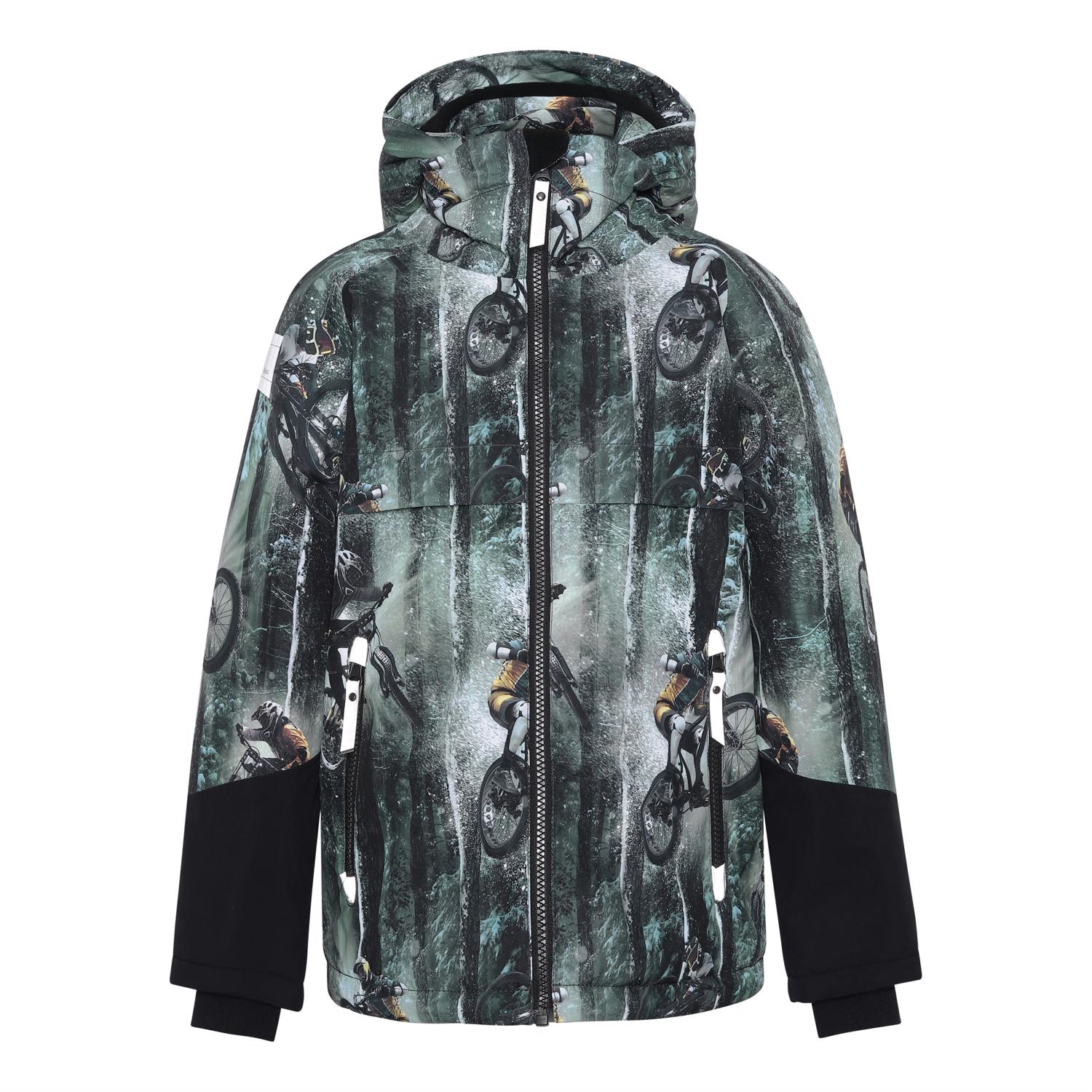 Castor är en fodrad och vattentät vinterjacka i grön med mountenbikeåkare. Jackan har avtagbar huva, dold dragkedja och fickor, samt synliga reflexer på ärmen och baktill. Jackan är i ett vind- och vattentätt material som andas och innertyg och foder är återvunnet, tillverkat av återvunnen polyester. Denna produkt har en PFC- fri impregnering (innehåller t.ex. inte PFOS, PFOA och liknande). Vattenpelare och andningsförmågan är ytterligt förbättrad och är nu helt uppe i 15.000mm i vattenpelare och andningsförmågan på 15.000 g/m2/24t.