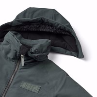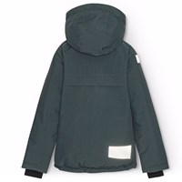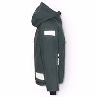 Grå vind- och vattentät vinterjacka i återvunnen nylon för en kall vinter. Jackan har en avtagbar fodrad huva och en dragkedja med överlappande flik för att hålla ute snö, vind och vatten. Jackan har flera stora reflexer för att öka synligheten i trafiken. Jackan har fodrade fickor med dragkedja samt en justerbar resår i nederkanten av jackan. Ärmarna har ribbstickade muddar, som effektivt håller ute vind, snö och regn samtidigt som de ser till att vantar håller sig på plats. Jackan är fodrad med 3M™ Thinsulate™, vilket ger barnet större rörlighet.