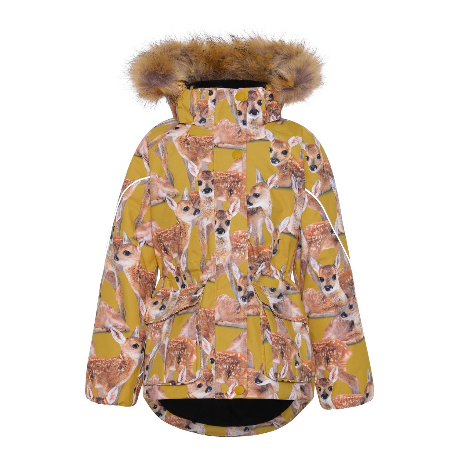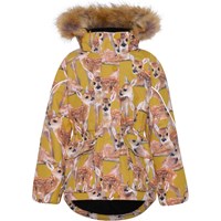Cathy fur är en vattentät vinterjacka i gul med rådjur. Jackan har avtagbar huva med fuskpälskant (som också är avtagbar), dragkedja, rymliga fickor, justerbar midja och Molos välkända stjärnreflex baktill. Jackan är i ett vind- och vattentätt material som andas och innertyg och foder är återvunnet, tillverkat av återvunnen polyester. Denna produkt har en PFC- fri impregnering (innehåller t.ex. inte PFOS, PFOA och liknande). Vattenpelare och andningsförmågan är ytterligt förbättrad och är nu helt uppe i 15.000mm i vattenpelare och andningsförmågan på 15.000 g/m2/24t.
