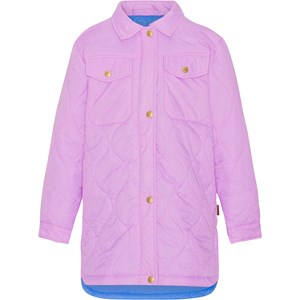 Quiltet, vandafvisende frakke i lilla med skortekrave, store, lukkede brystlommer, diskrete sidelommer og samt skjult lynlås, der er dækket af en vindstolpe med praktiske trykknapper. Frakken har slids i siderne for øget bevægelighed. Der er anvendt en vand- og smudsafvisende coating uden brug af kemikalier som PFOS, PFOA og lignende.