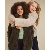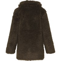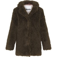 Haili är en mjuk fuskpälskappa i mörkgrön med tryckknappar. Kragen kan avnädas både upp- och nervikt.