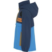 Halden är en blå anorak och är den perfekta sommar/övergångsjackan. Jackan är funktionell eftersom materialet är vind- och vattentätt och har bra andningsförmåga och samtidigt har jackan många coola detaljer och färger som pryder alla kläder. Jackan är i blå med bruna detaljer och har en avtagbar huva.