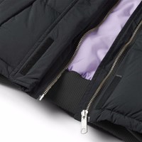Quiltad svart väst i återvunnen nylon. Västen har en stående krage och dragkedja med överlappande flik. Den har också stora ärmhål, vilket gör att en jacka eller en tjock tröja kan bäras under. Västen har framfickor och en justerbar resår i nertill. Ytan är vattenavvisande och fri från PFOS och PFOA.