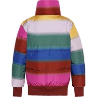 Halle är en snygg regnbågsfärgad bomber jacka med glansig yta och ribbade kanter vid ärmslut och botten. Jackan är fodrad med pearl padding som ger en extra mjuk, varm och dunliknande känsla.Fodret och innertyget är 100% återvunnet och tillverkat av återvunna plastflaskor. Yttermaterialet har en vattenavvisande PFC-fri impregnering (innehåller t.ex. inte PFOS, PFOA och liknande).