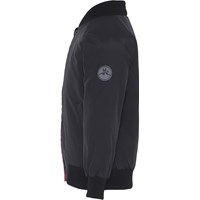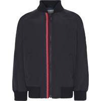 Bomberjacka i svart med röd och blå rand längs dragkedjan fram. Jackan har ribbkanter vid hals, ärmslut och nederkant. Jackan är den perfekta övergångsjackan och har en vattenavvisande PFC-fri impregnering (innehåller ej PFOS, PFOA eller liknande). .