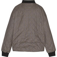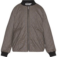 Quiltad och vadderad bomberjacka med rutigt print i bruna och blå nyanser. Jackan har dragkedja längs framsidan, diagonala fickor på båda sidor samt ribbning vid ärmsluten och halsen.