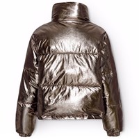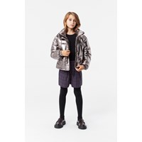 Vattenavvisande silverjacka med en uppstående krage med integrerad huva och dragkedja med överfall som håller snö, vind och vatten ute. Jackan har fickor framtill samt resår i ärmöppningarna som håller vinden ute och bättre behåller värmen. Jackan är fodrad med Pearl Padding, ett återvunnet polyesterfyll som säkerställer enhetlig mjukhet, optimal värme och enkel skötsel vid tvätt. Jackans vattenavvisande yta är fri från PFOS och PFOA