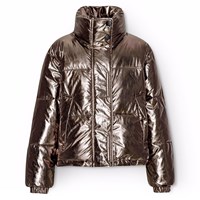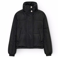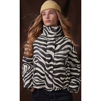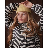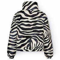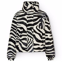 Vattenavvisande jacka i återvunnen polyester med ett coolt zebratryck. Jackan har en hög krage med integrerad huva, en dragkedja med överlappande flik för att hålla ute snö, vind och vatten. Den har också framfickor och elastiska ärmslut för att hålla ute vinden och behålla värmen. Jackan är fodrad med en återvunnen polyesterfyllning som garanterar jämn mjukhet, optimal värme och enkelt underhåll vid tvätt. Jackans vattenavvisande yta är fri från PFOS och PFOA.