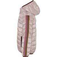 Hao är en rosa jacka med svart dragkedja och fickor med dragkedja. Jackan har avtagbar luva och är fodrad med återvunnen pearl padding, som ger extra mjukhet, håller värmen bra och har en dunliknande känsla. Yttermaterialet har en vattenavvisande PFC-fri impregnering (innehåller t.ex. inte PFOS, PFOA eller liknande).