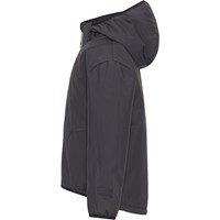 Let vatteret vindjakke i grå med sorte kontraster, som er lavet af softshel. Jakken har aftagelig hætte, to frontlommer og refleks på ryggen, samt regulerbar løbegang forneden. Jakken er ultrablød, og dens letvægt betyder, at jakken kan rulles sammen i hætten, så den er super nem at transportere - f.eks. i en skoletaske. Produktet har en vandafvisende PFC-fri imprægnering (indeholder f.eks. ikke PFOS, PFOA og lignende). Vandsøjletryk: 12.000 mm. Åndbarhed: 8.000 g/m2/24t.