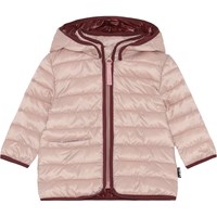 Harmony är en rosa babyjacka med vinrött innerfoder och kantband. Jackan har avtagbar luva och är fodrad med återvunnen pearl padding, som ger extra mjukhet, håller värmen bra och har en dunliknande känsla. Yttermaterialet har en vattenavvisande PFC-fri impregnering (innehåller t.ex. inte PFOS, PFOA eller liknande).