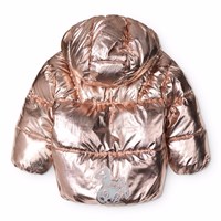 Kopparfärgad jacka för de små i återvunnen polyester med en avtagbar huva, dragkedja och fleecefodrade fickor. Jackan har resår kring handlederna och nederkanten för att behålla värmen. Dessutom har jackan en fyllning av återvunnen polyester som ger jämn mjukhet och optimal termisk isolering.