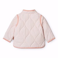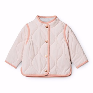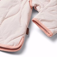 Rosa vattenavvisande termojacka i återvunnen nylon med quiltat mönster. Jackan har en normal passform, sidofickor, knäppning med knappar framtill och matchande kantband för en stilren finish.